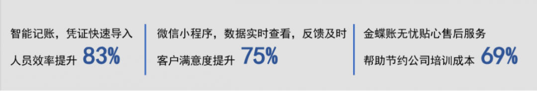 02 助力业务迅速拓展:金蝶账无忧帮助企业从做账报税中抽身出来,让团队投入到业务拓展的工作中,使得公司发展越大越强